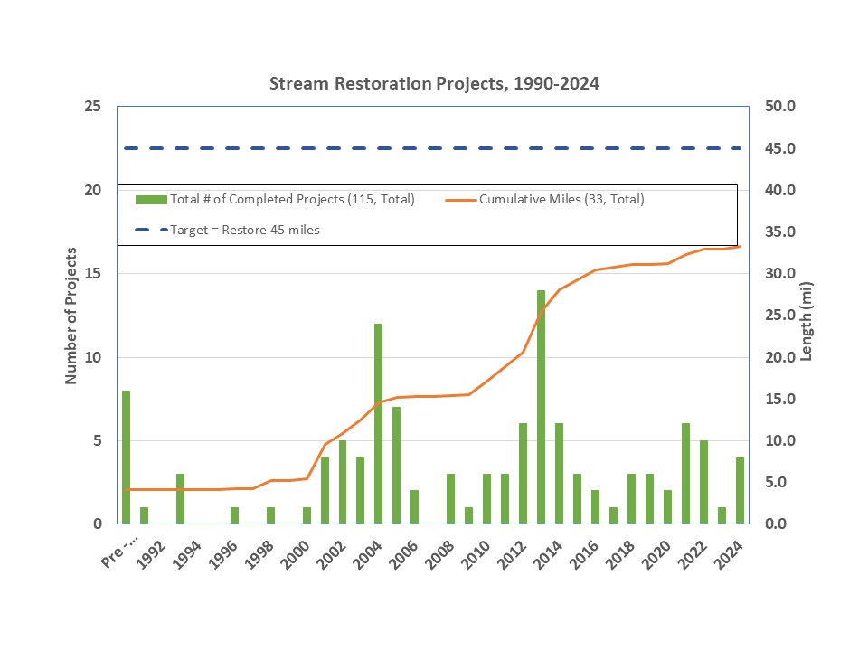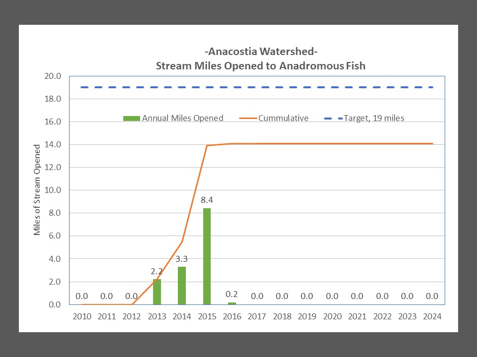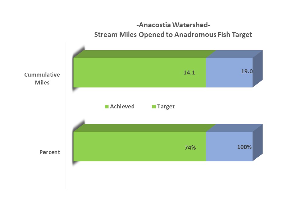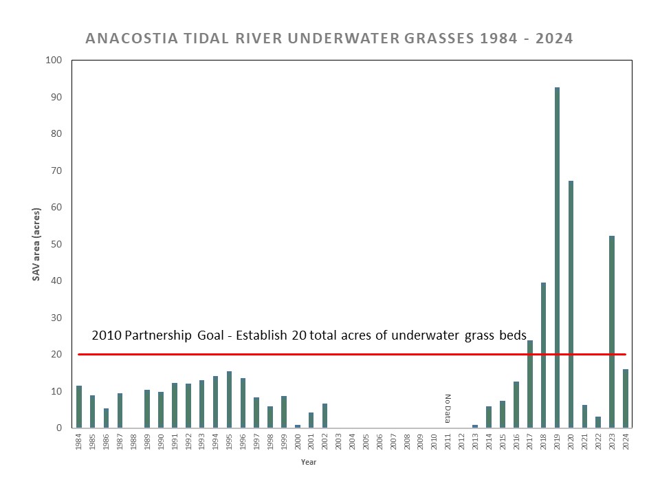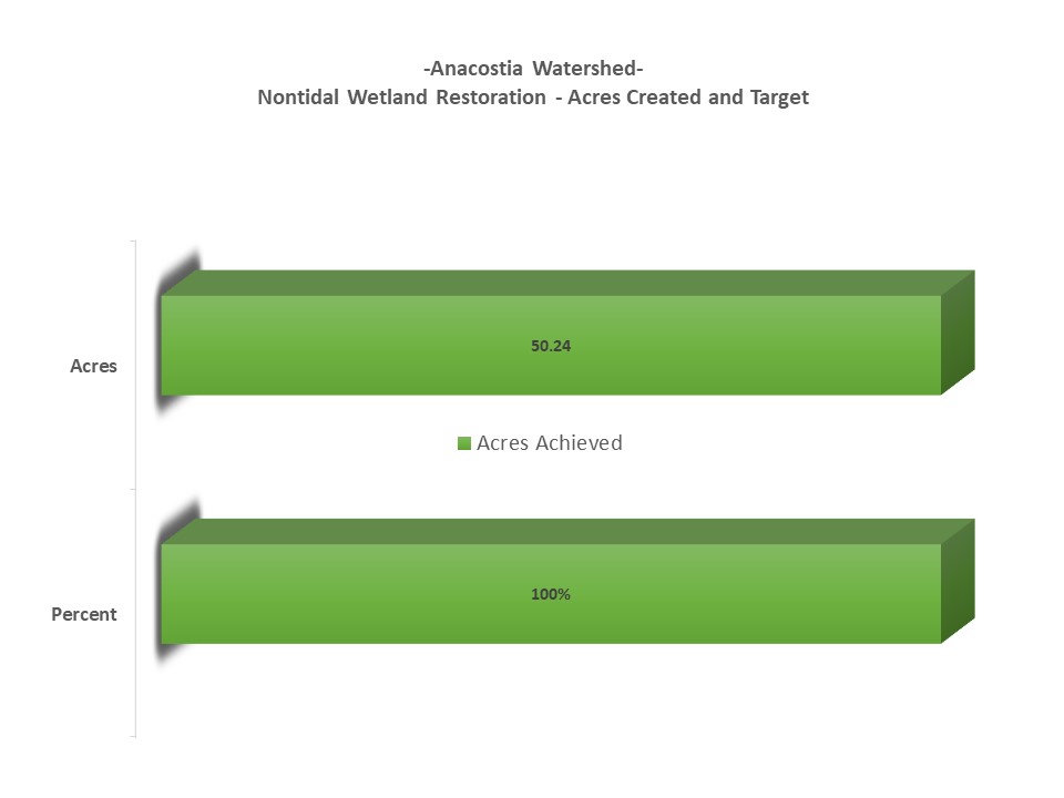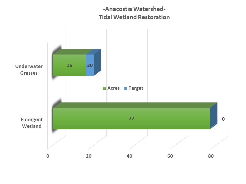 Tidal wetland acreages have met the 2010 goals. However, the District has more ambitious goal that will create more wetlands in the Anacostia.